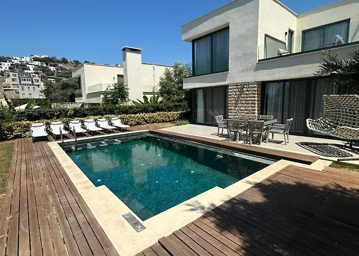 Gårtur på 20 minutter fra Villa En Pier Private Pool vil føre gæsterne til cavus island, mens Myndos ligger 19 minutters gang derfra. Indkvartering har 5 værelser, et fuldt udstyret køkken og 5 badeværelser.